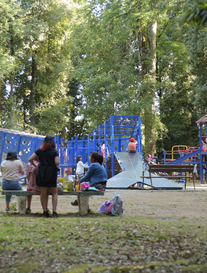 Cuenta con una amplia diversidad de juegos, encontrando dentro de esta área: columpios, barras, escaleras, toboganes, caballo de metal, entre otros. Esto permite la recreación de niños y jóvenes en forma segura.
